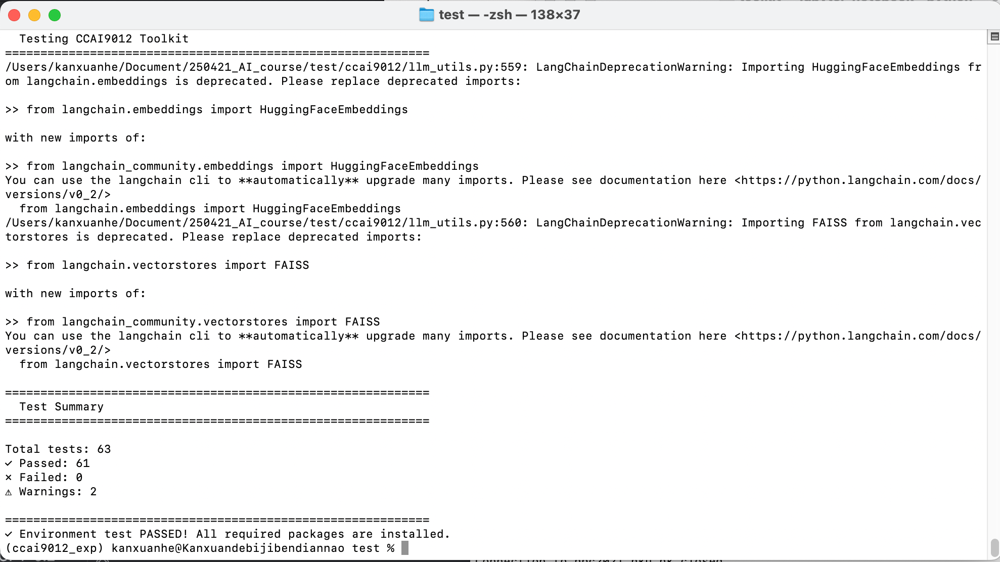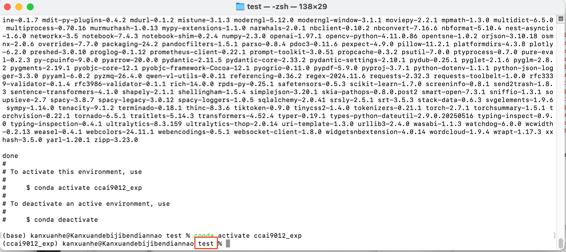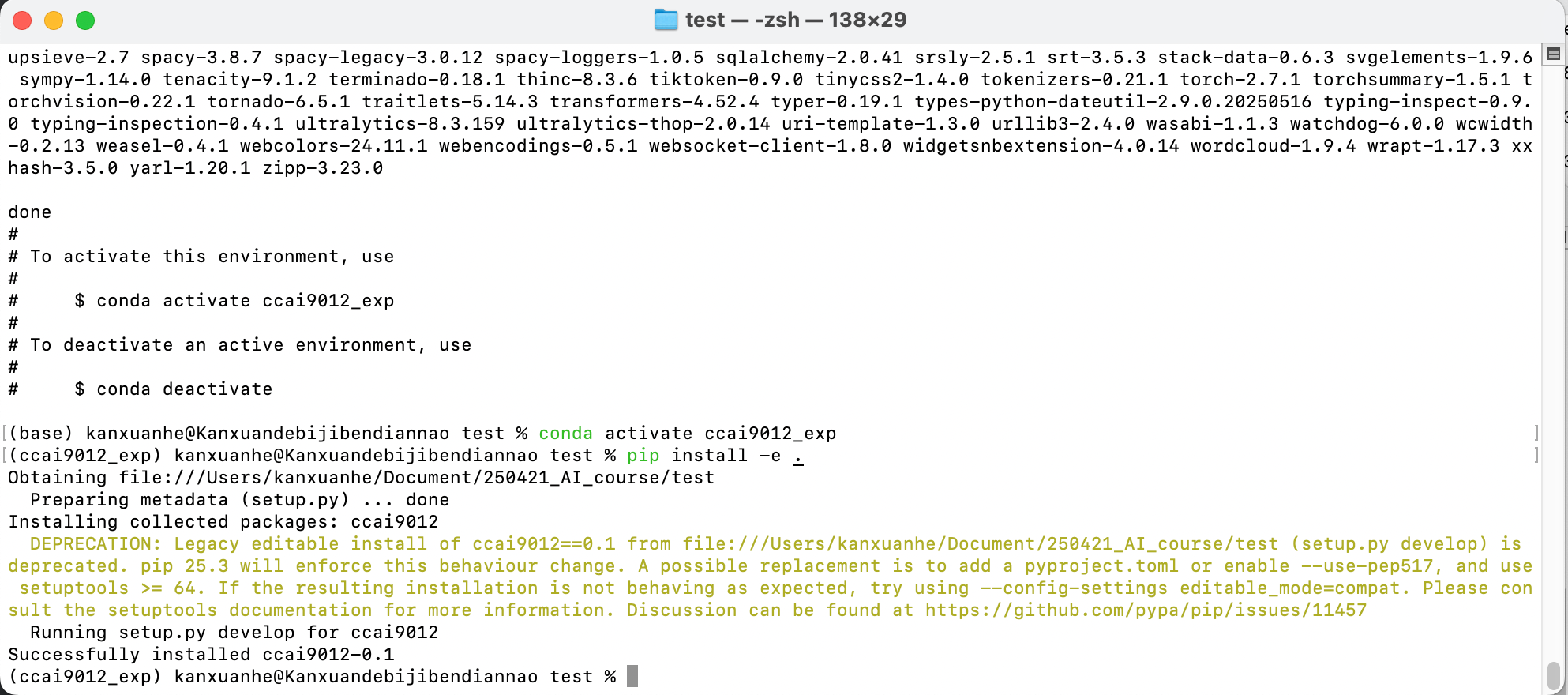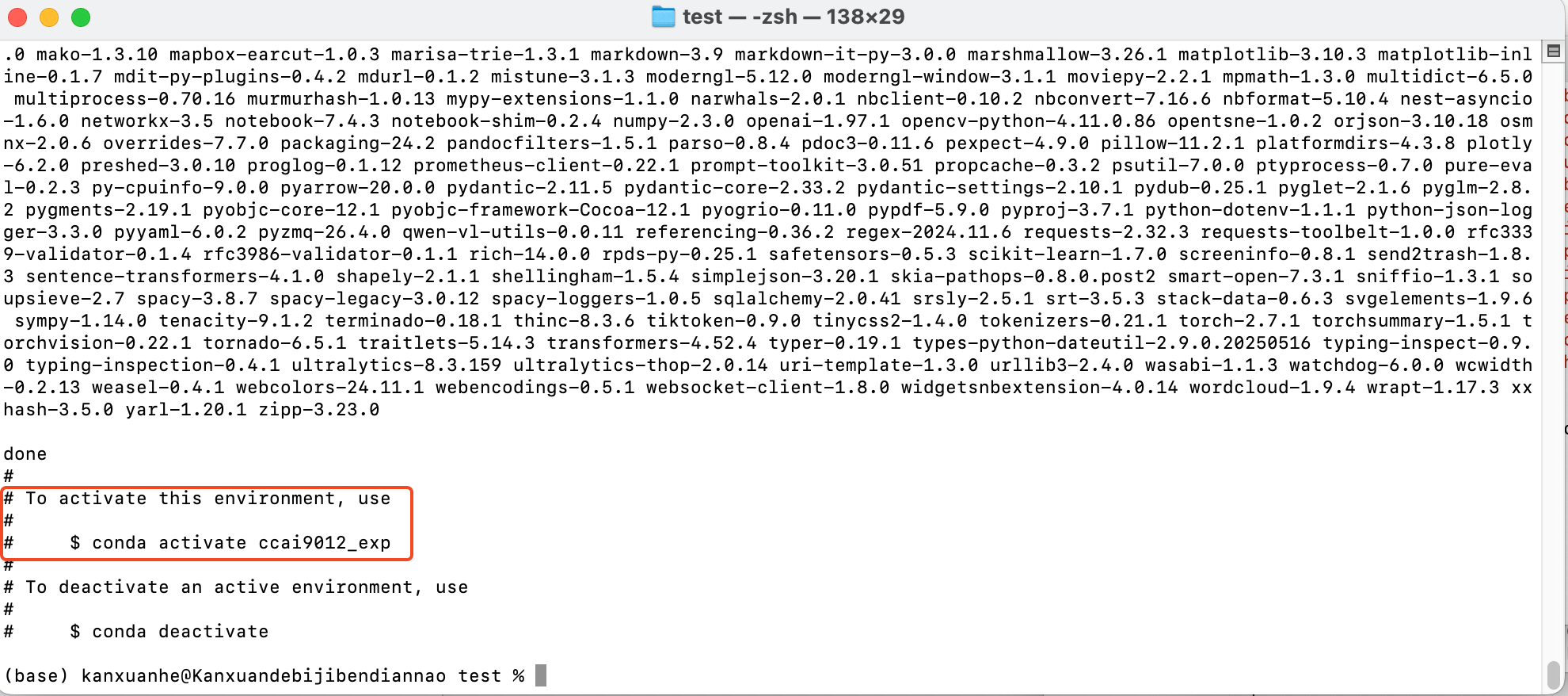 Your command prompt should now show (ccai9012) at the beginning of the line, indicating the environment is active.